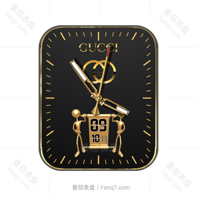GUCCI古驰黑色金色奖杯人物指针表盘.clock